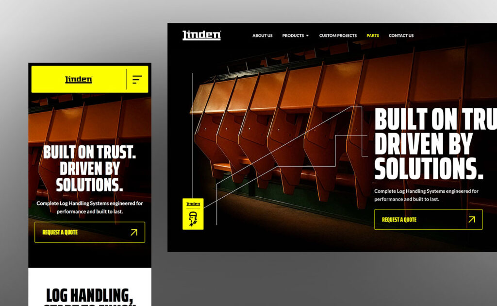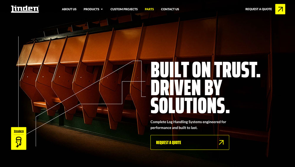 Website institucional com catálogo de máquinas voltadas para manuseio de toras