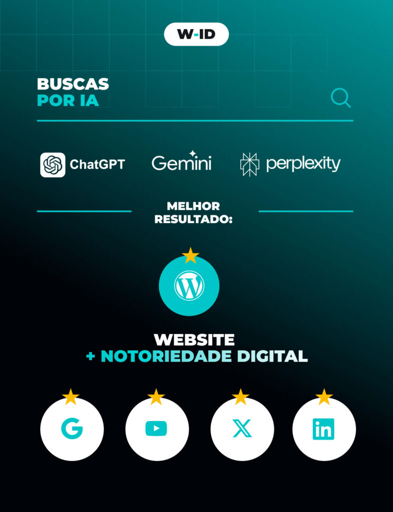 - Consistência de Marca Onipresente: A IA aprende sobre entidades (pessoas, lugares, marcas) analisando toda a web. Por isso, é vital que o nome da sua marca, sua mensagem e seus valores sejam consistentes em seu site, redes sociais, perfis de diretórios e em qualquer outro lugar onde você seja mencionado.